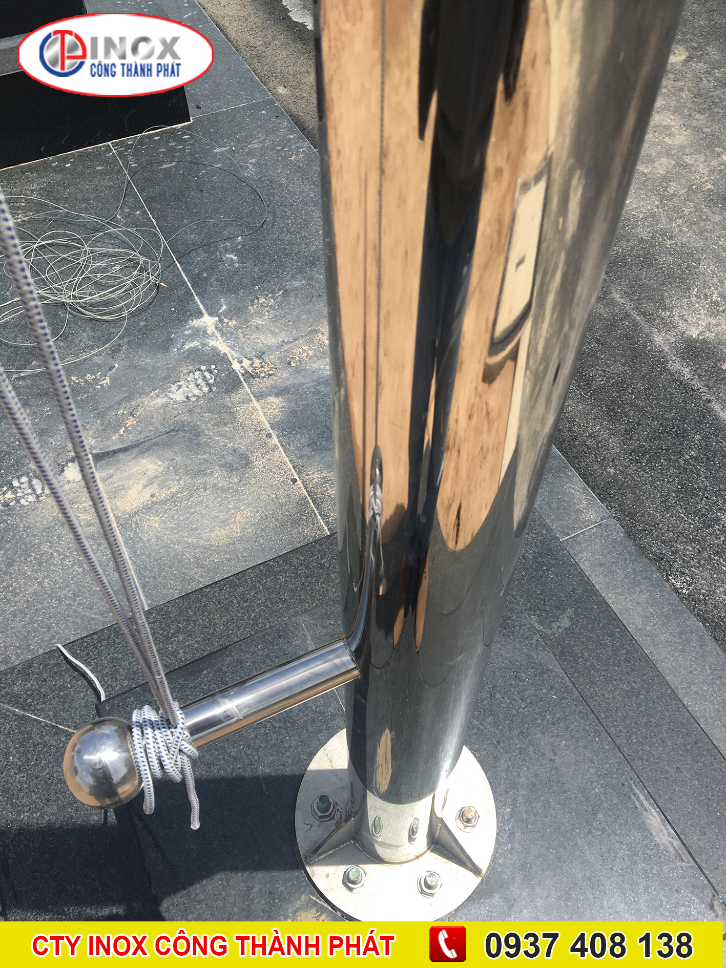 - Chất liệu: Inox cao cấp SUS 304. Trên đây là tiêu chuẩn cột cờ inox thông thường do chúng tôi sản xuất.
