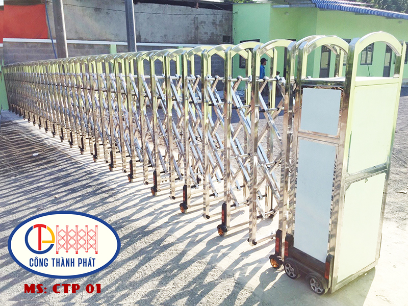 Cửa cổng xếp inox CTP sản xuất bằng chất liệu inox 201 hoặc 304 cao cấp, được gia công và lắp ráp tại xưởng. Quý khách hàng có thể đặt hàng cửa cổng xếp inox theo yêu cầu về chất liệu, độ dày inox và chiều cao của cổng xếp inox.