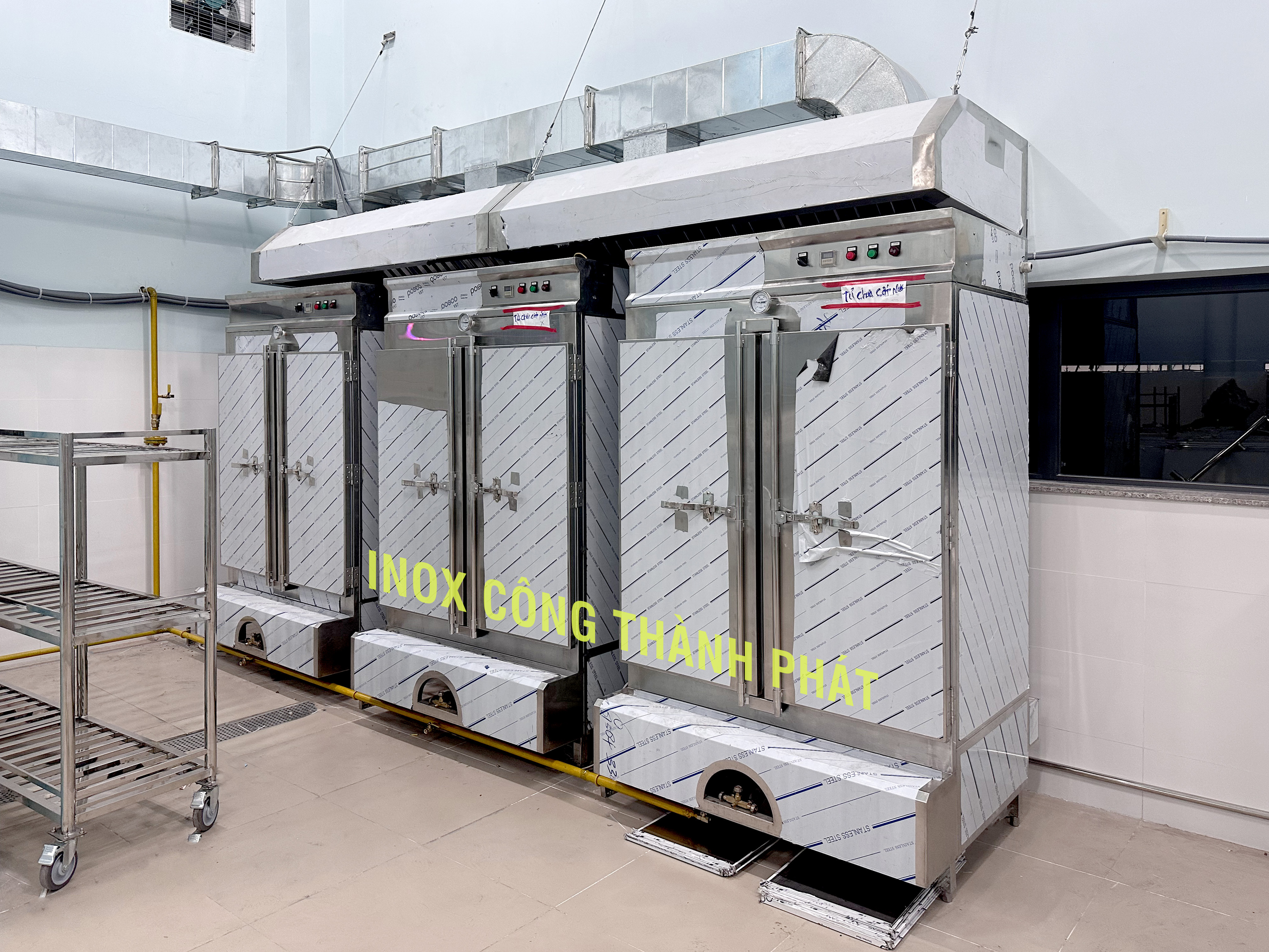 Mô tả : Tủ hấp cơm công nghiệp sử dụng điện 3 pha 380v, công suất 18kw/ . Chất liệu inox 304 dày 1.0 mm . Sử dụng cho trường học, nhà hàng, bệnh viện ... Kích thước tủ cơm : Dài 1200 Sâu 1000 Cao 2100 mm. Inox Công Thành Phát chuyên nhận thiết kế thi công lắp đặt hệ thống bếp nấu công nghiệp toàn khu vực miền Nam với giá cạnh tranh nhất